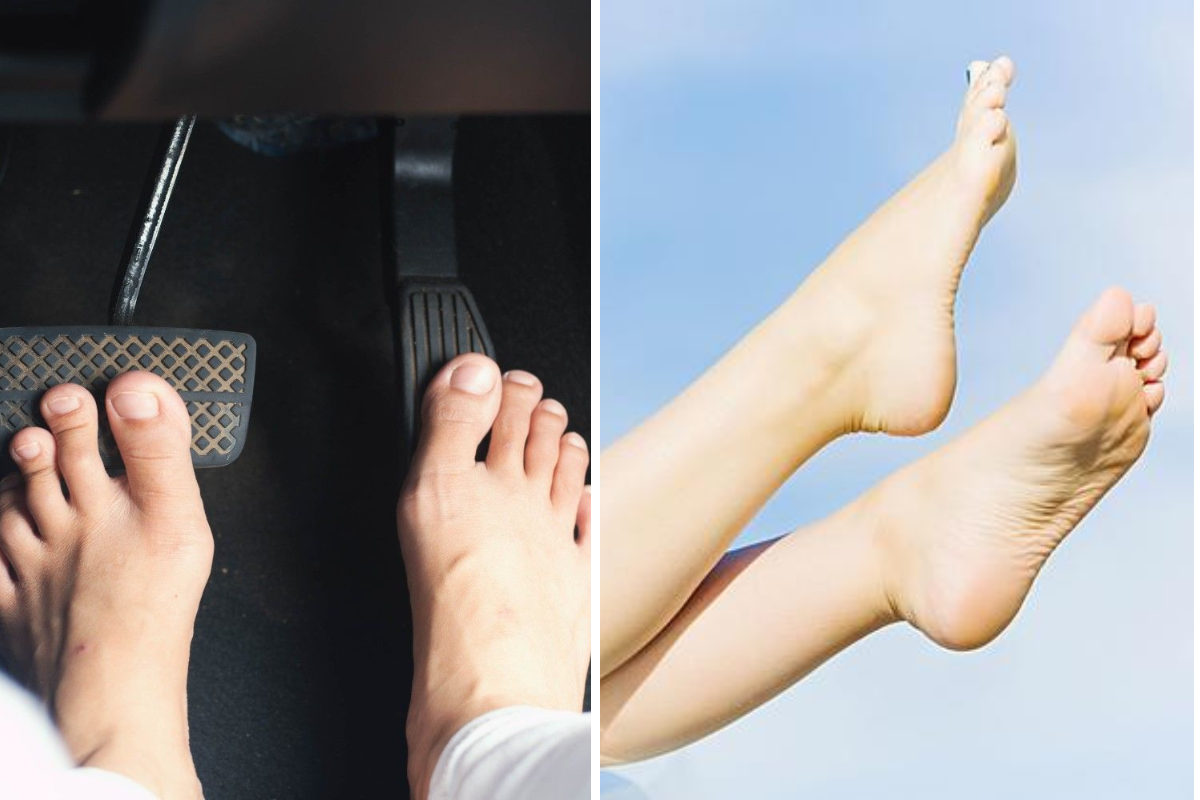 Bare feet reduce pedal grip when sweaty, heighten injury risk from glass in crashes, and limit feel for clutch work in manuals.
