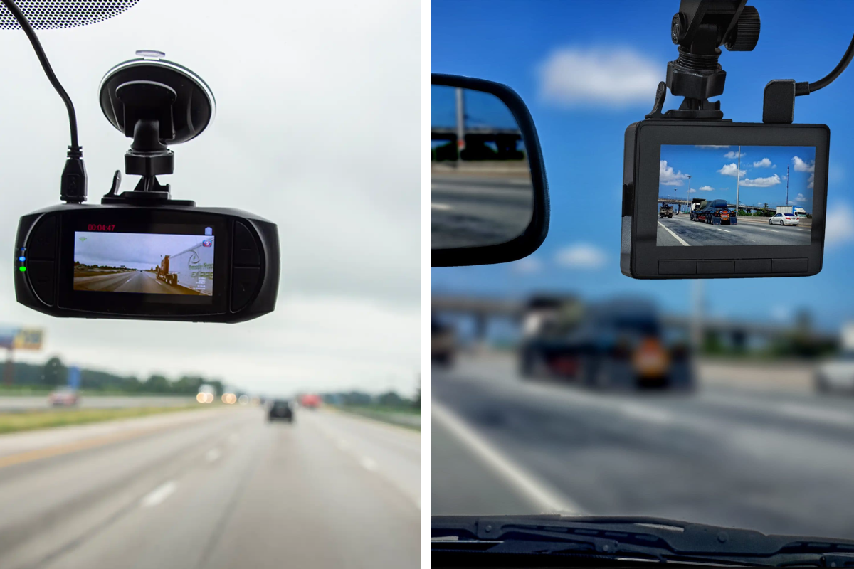 Mount dash cams on the dashboard or behind the rearview mirror to fully comply, as these spots avoid any view obstruction.
